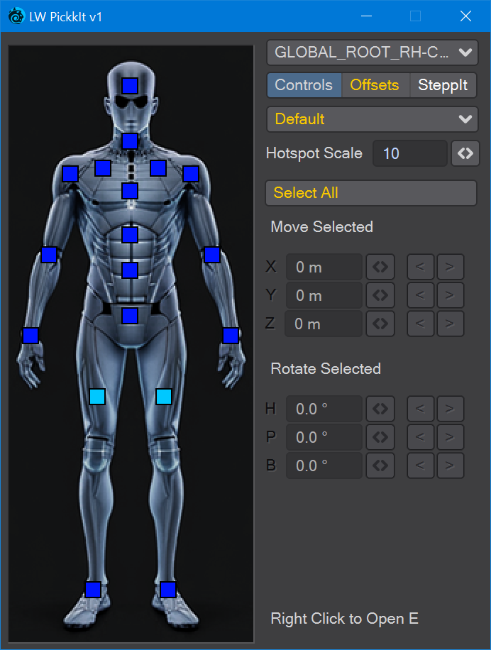 Pick-it (ピックイット)は、Rhiggit (リギット) ベースのリグに最適化された、シンプルで効率的な関節選択ツールです。 肘や手首などの主要な関節にすばやくアクセスでき、複雑なレイヤーメニューを一つひとつ開く手間がなくなります。