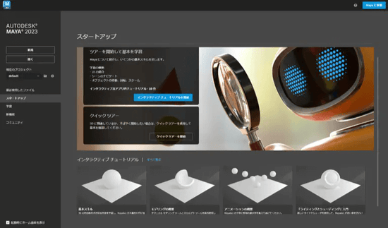 新しくなったMayaのホーム画面とインタラクティブチュートリアル