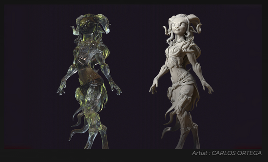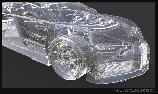 ZBrushのRedshiftで、リアルなガラスやコースティクス効果を実現します。さまざまなマテリアルやサーフェイスで、高度なマテリアル合成やより高度な複雑性を探求できます。