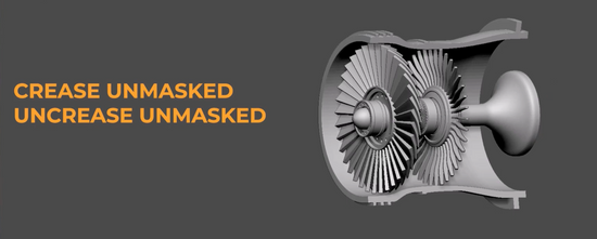 Crease Unmaskedは、面と面が接し、エッジができる領域へのマスキングの適用を制御します。この機能により、クリース部分のコントロールが広がります。